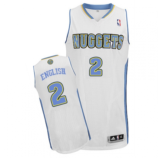 Men's Adidas Denver Nuggets #2 Alex English Authentic White Home NBA Jersey