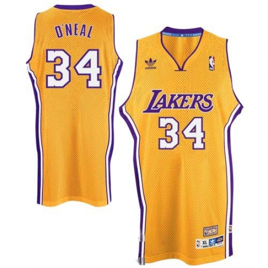 Home>NBA>Los Angeles Lakers>Shaquille O'Neal>Men's Adidas Los Angeles Lakers #34 Shaquille O'Neal Swingman Gold Throwback NBA Jersey
