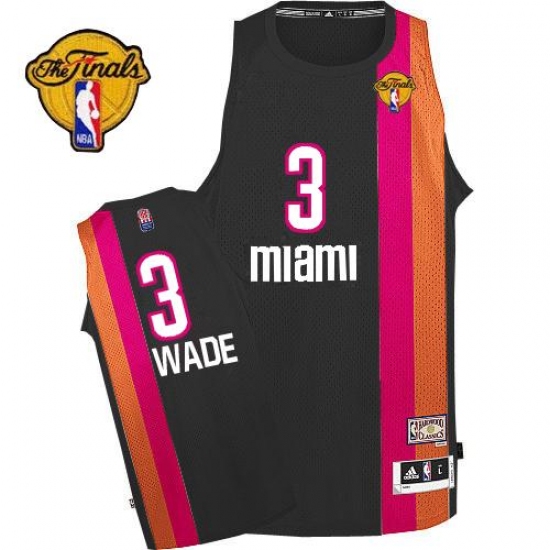 Men's Adidas Miami Heat #3 Dwyane Wade Authentic Black ABA Hardwood Classic Finals Patch NBA Jersey
