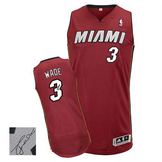 Men's Adidas Miami Heat #3 Dwyane Wade Authentic Red Alternate Autographed NBA Jersey