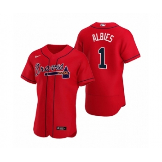 Men's Atlanta Braves #1 Ozzie Albies Nike Red Authentic 2020 Alternate Jersey