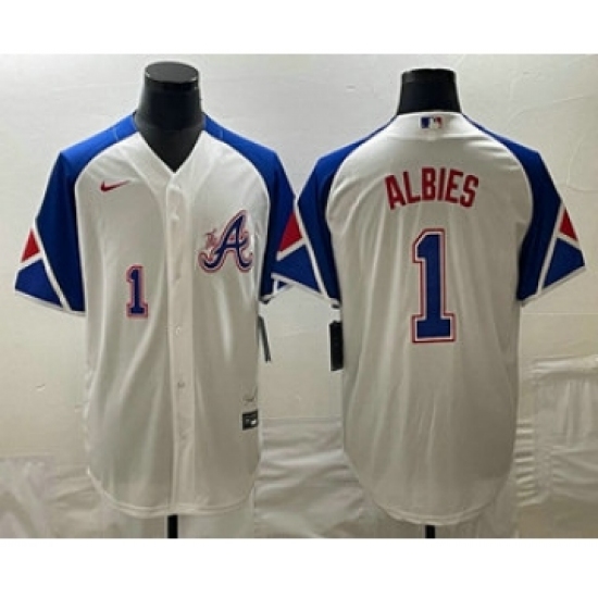 Men's Atlanta Braves #1 Ozzie Albies White 2023 City Connect Cool Base Stitched Baseball Jersey