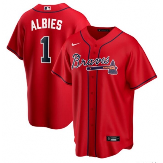 Men's Atlanta Braves #1 Ozzie Albies Red Cool Base Stitched Jersey