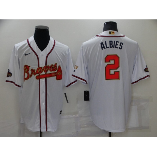 Men's Atlanta Braves #2 Ozzie Albies White 2022 Gold Program Authentic Player Jersey