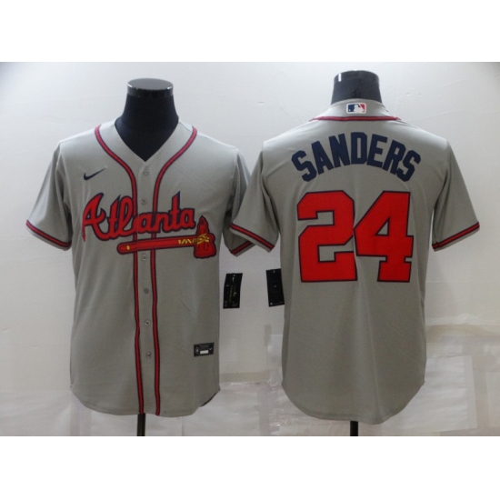>Men's Atlanta Braves #24 Deion Sanders Gray Nike MLB Jersey