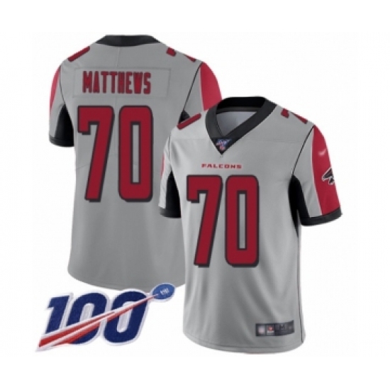 >Men's Atlanta Falcons #70 Jake Matthews Limited Silver Inverted Legend 100th Season Football Jersey