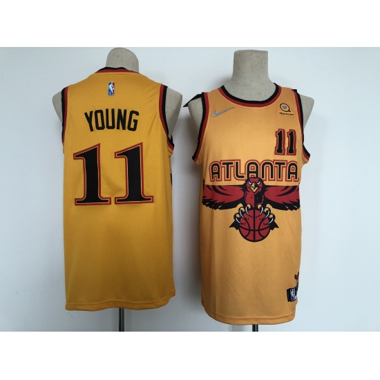 Men's Atlanta Hawks 2021-22 City Edition #11 Trae Young Orange Stitched Basketball Jersey