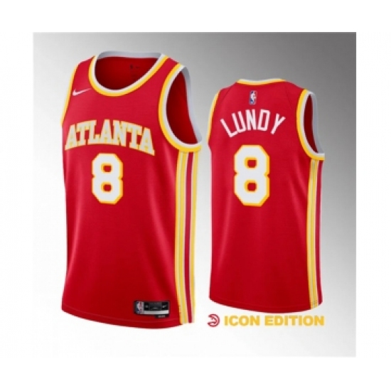 Men's Atlanta Hawks #8 Seth Lundy Red 2023 Draft Icon Edition Stitched Jersey