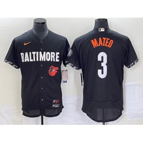 >Men's Baltimore Orioles #3 Jorge Mateo Black 2023 City Connect Flex Base Stitched Jersey 1