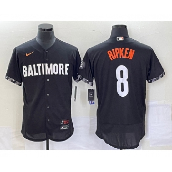 >Men's Baltimore Orioles #8 Cal Ripken Jr Black 2023 City Connect Flex Base Stitched Jersey1