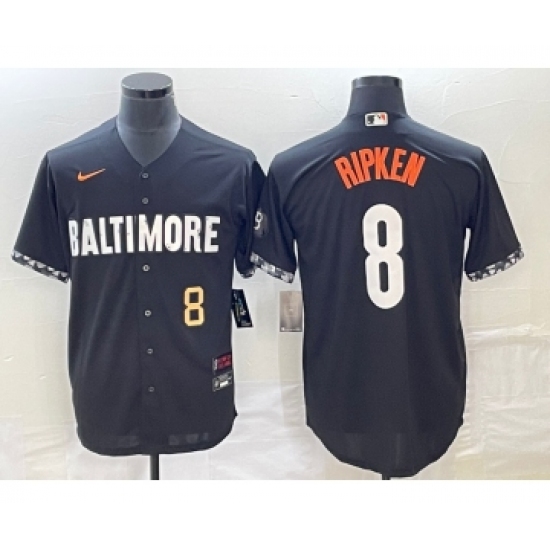Men's Baltimore Orioles #8 Cal Ripken Jr Number Black 2023 City Connect Cool Base Stitched Jersey
