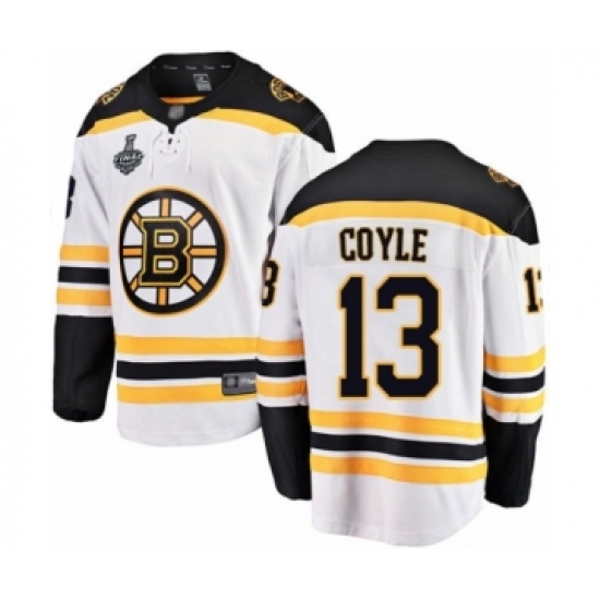 Men's Boston Bruins #13 Charlie Coyle Authentic White Away Fanatics Branded Breakaway 2019 Stanley Cup Final Bound Hockey Jersey
