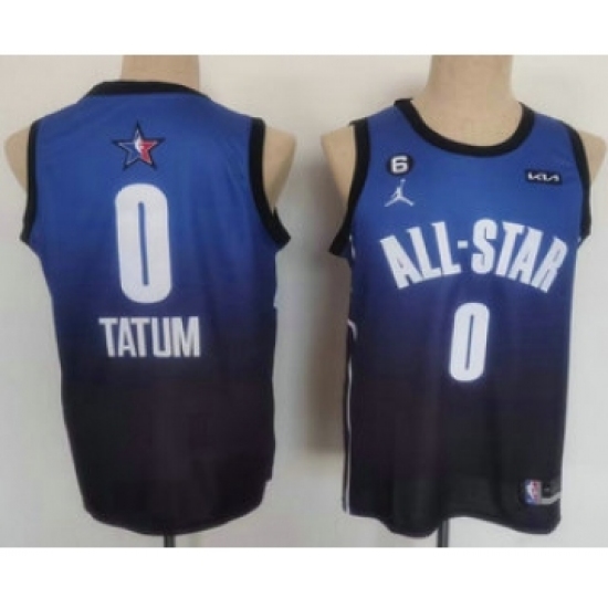 >Men's Boston Celtics #0 Jayson Tatum Navy Blue 2022 All Star 6 Patchs Icon Sponsor Swingman Jersey