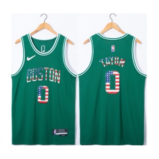 >Men's Boston Celtics #0 Jayson Tatum USA Flag Green Stitched Jersey