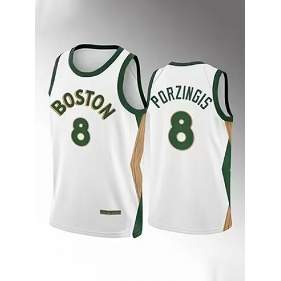 >Men's Boston Celtics #8 Kristaps Porzingis White Draft Association Edition Stitched Basketball Jersey