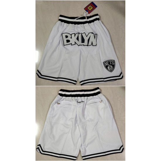 >Mens Brooklyn Nets White Shorts