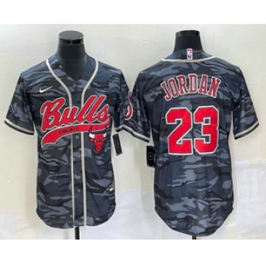 >Men's Chicago Bulls #23 Michael Jordan Black Camo Cool Base Stitched Baseball Jersey