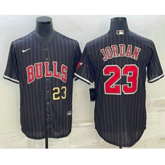 >Men's Chicago Bulls #23 Michael Jordan Number Black With Cool Base Stitched Baseball Jerseys