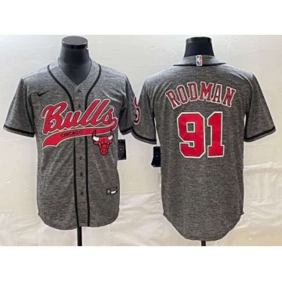Men's Chicago Bulls #91 Dennis Rodman Grey Gridiron Cool Base Stitched Baseball Jersey