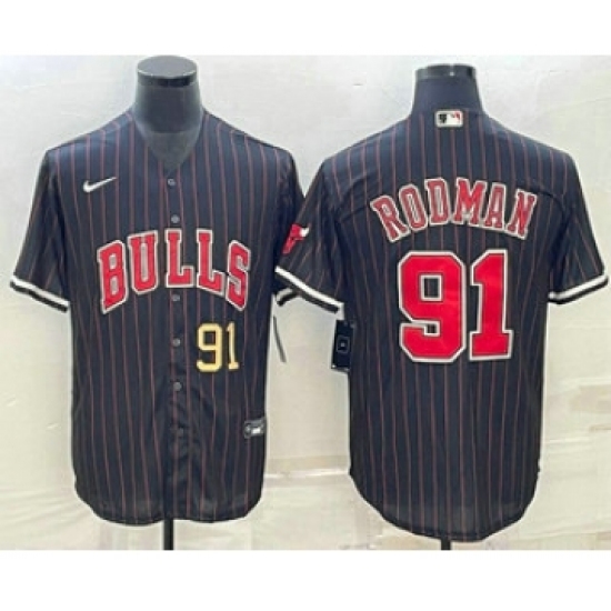 >Men's Chicago Bulls #91 Dennis Rodman Number Black With Cool Base Stitched Baseball Jersey