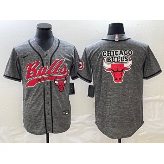 >Men's Chicago Bulls Blank Grey Gridiron Cool Base Stitched Baseball Jersey