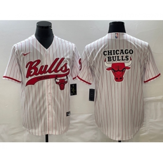>Men's Chicago Bulls Blank White Pinstripe Cool Base Stitched Baseball Jersey