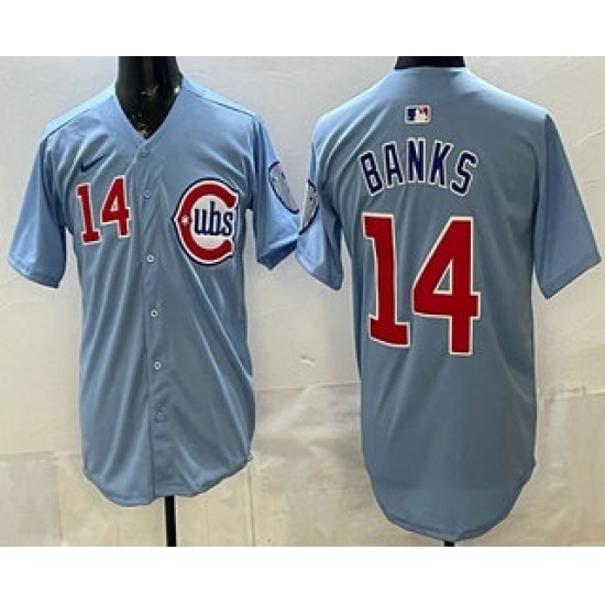 Men's Chicago Cubs #14 Ernie Banks Baby Blue Limited Jersey