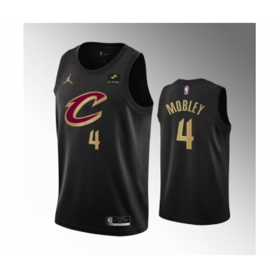 >Men's Cleveland Cavaliers #4 Evan Mobley Black Statement Edition Stitched Basketball Jersey