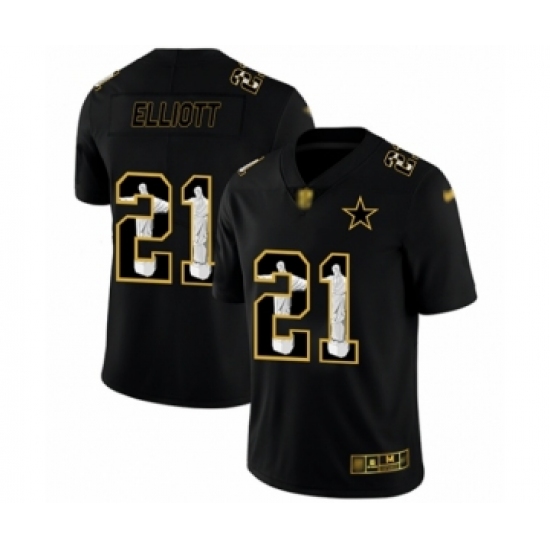 Men's Dallas Cowboys #21 Ezekiel Elliott Black Gold Edition With 1960 Patch Limited Stitched Football Jersey