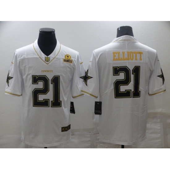 Men's Dallas Cowboys #21 Ezekiel Elliott White Gold Limited Player Jersey