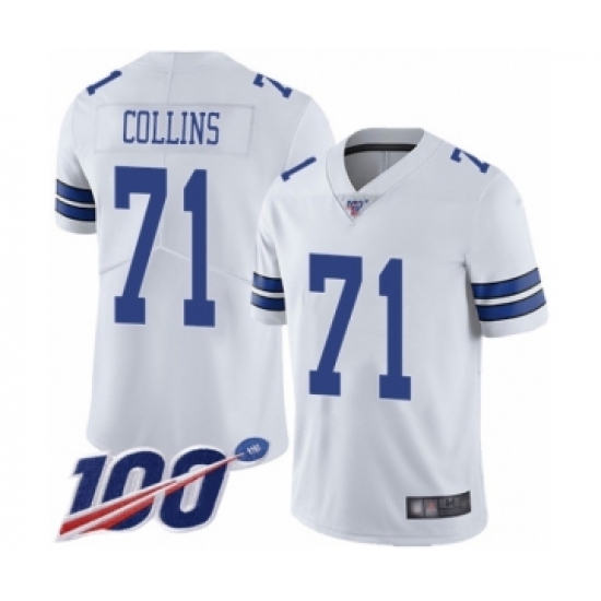 >Men's Dallas Cowboys #71 La'el Collins White Vapor Untouchable Limited Player 100th Season Football Jersey