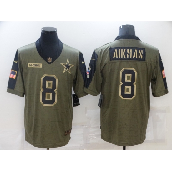>Men's Dallas Cowboys #8 Troy Aikman Nike Olive 2021 Salute To Service Limited Player Jersey