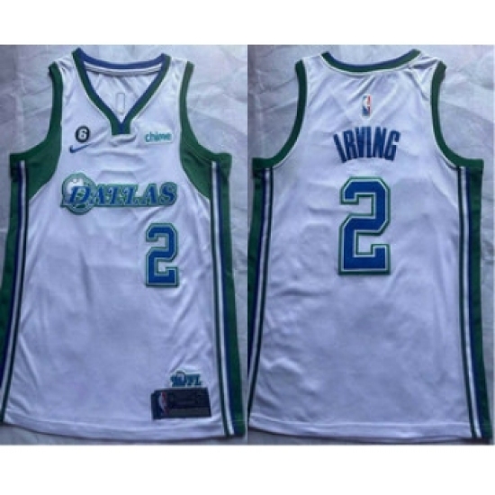 >Men's Dallas Mavericks #2 Kyrie Irving White With 6 Patch Nike 2022 City Edition Swingman Stitched Jersey