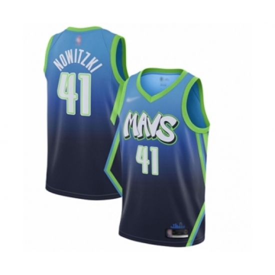 >Men's Dallas Mavericks #41 Dirk Nowitzki Swingman Blue Basketball Jersey - 2019 20 City Edition