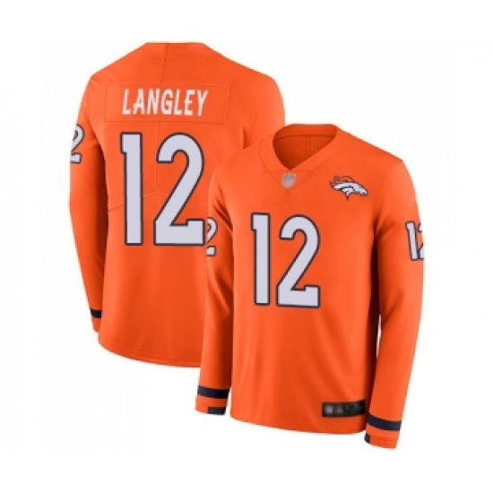 Men's Denver Broncos #12 Brendan Langley Limited Orange Therma Long Sleeve Football Jersey