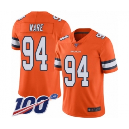 >Men's Denver Broncos #94 DeMarcus Ware Limited Orange Rush Vapor Untouchable 100th Season Football Jersey