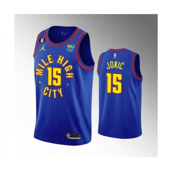 >Men's Denver Nuggets #15 Nikola Jokic Blue 2022-23 statement edition Stitched Jersey