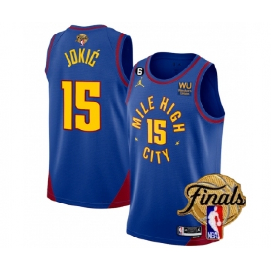 >Men's Denver Nuggets #15 Nikola Jokic Blue 2023 Finals Statement Edition With NO.6 Stitched Basketball Jersey