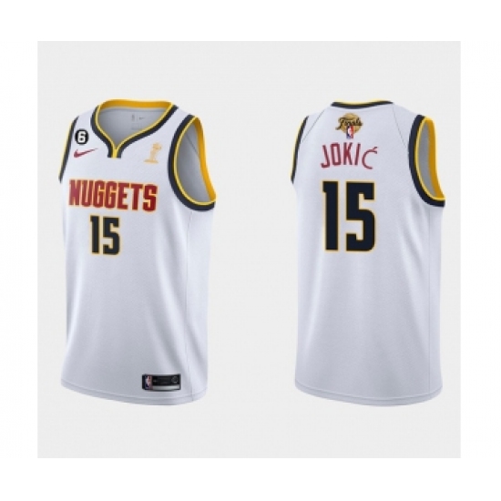 >Men's Denver Nuggets #15 Nikola Jokic White 2023 Finals Champions Association Edition With NO.6 Stitched Basketball Jersey