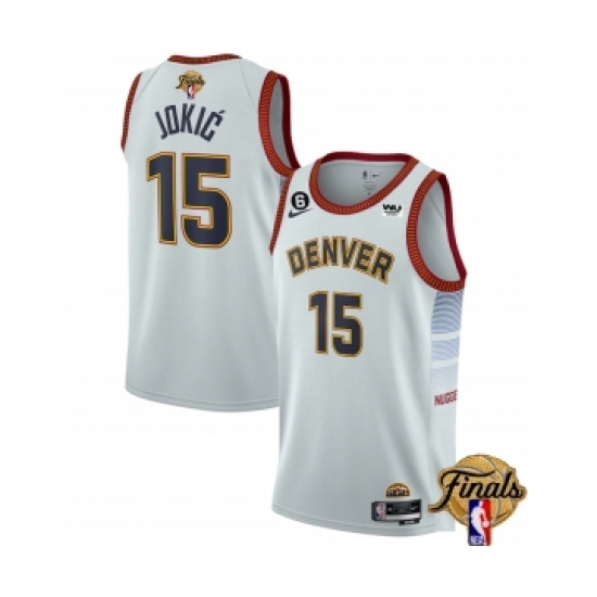 Men's Denver Nuggets #15 Nikola Jokic White 2023 Finals Icon Edition With NO.6 Stitched Basketball Jersey