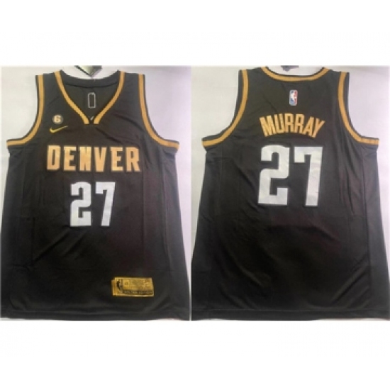 >Men's Denver Nuggets #27 Jamal Murray Black With NO.6 Stitched Jersey