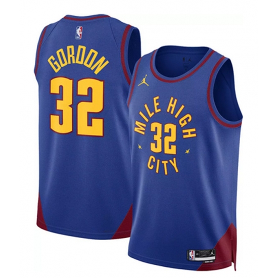 >Men's Denver Nuggets #32 Aaron Gordon Blue Statement Edition Stitched Basketball Jersey