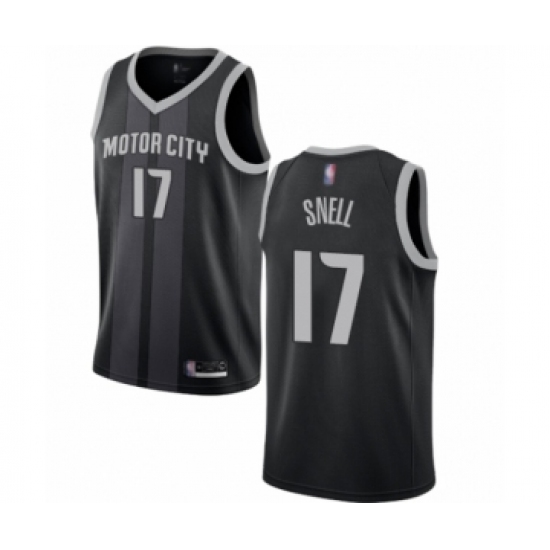 >Men's Detroit Pistons #17 Tony Snell Authentic Black Basketball Jersey - City Edition