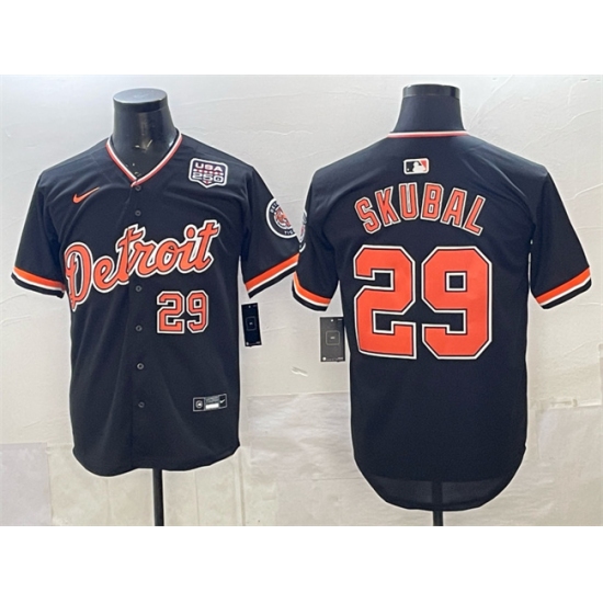 >Men's Detroit Tigers #29 Tarik Skubal Navy 2026 Alternate USA 250 Vapor Premier Limited Stitched Baseball Jersey