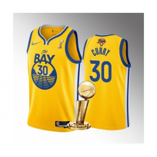 Men's Golden State Warriors #30 Stephen Curry Gold 2022 NBA Finals Champions Stitched Jersey