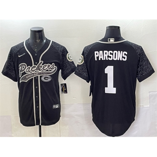 Men's Green Bay Packers #1 Micah Parsons Black Reflective With Cool Base Stitched Baseball Jersey