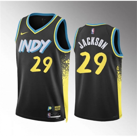 >Men's Indiana Pacers #29 Quenton Jackson Black 2023-24 City Edition Stitched Basketball Jersey