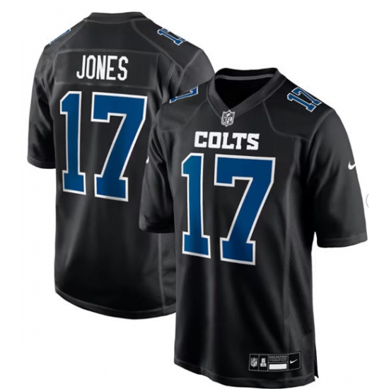 Men's Indianapolis Colts #17 Daniel Jones Black Stitched Game Jersey