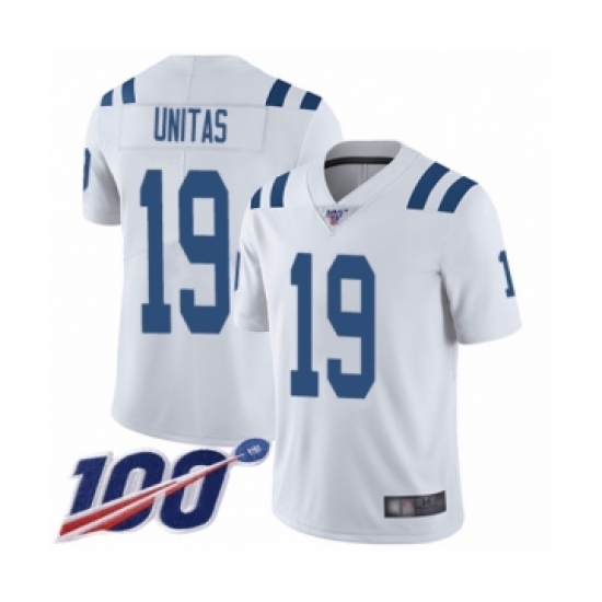 Men's Indianapolis Colts #19 Johnny Unitas White Vapor Untouchable Limited Player 100th Season Football Jersey