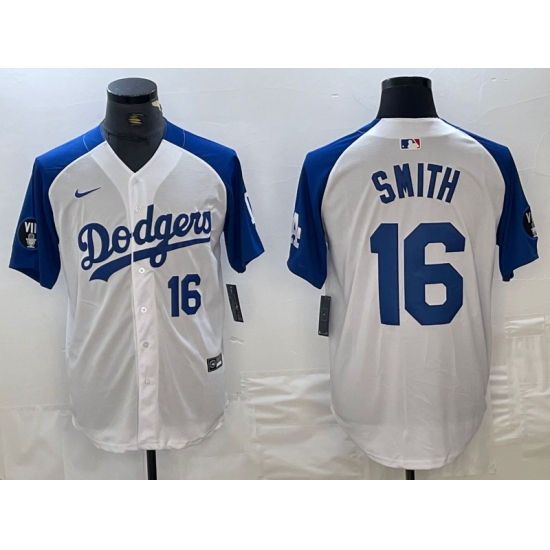 Men's Los Angeles Dodgers #16 Will Smith Number White Blue Fashion Stitched Cool Base Limited Jerseys